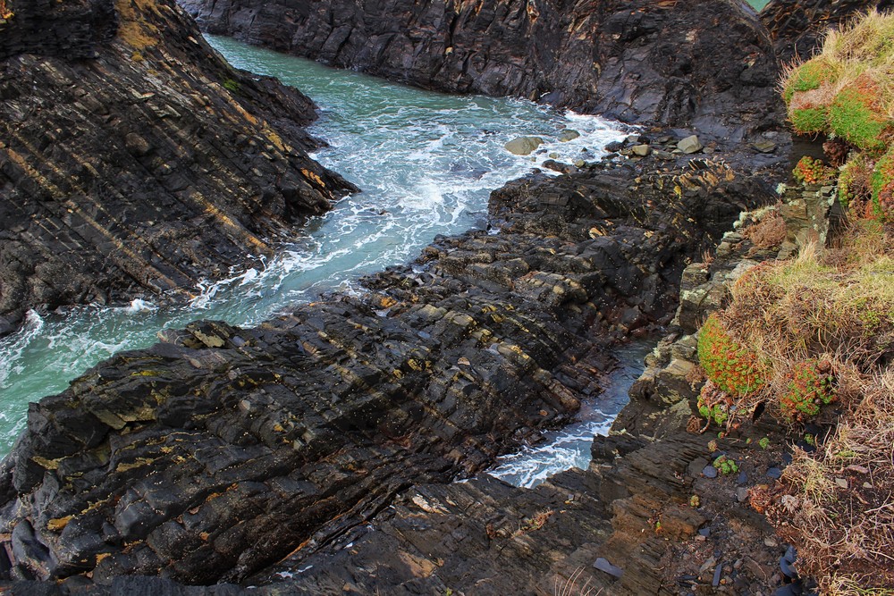 We walked from Ceibwr along the coast to Pwll y Wrach, (the Withes’ Cauldron) a collapsed cave connected to the sea through a series of narrow channels. Apparently you can also reach the Witches’ Cauldron by sea kayak at low tide!