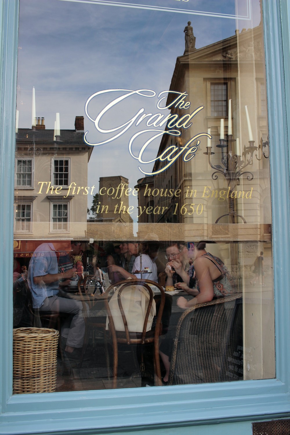 After the museum, we walked around a while longer, exploring some of the back streets of the town and getting a better feel for the town’s medieval history. We also stumbled upon Oxford’s Covered Market and seriously contemplated getting some cookies. We held out, though, because we knew we wanted to have tea and coffee in the oldest coffee house in England, The Grand Café.