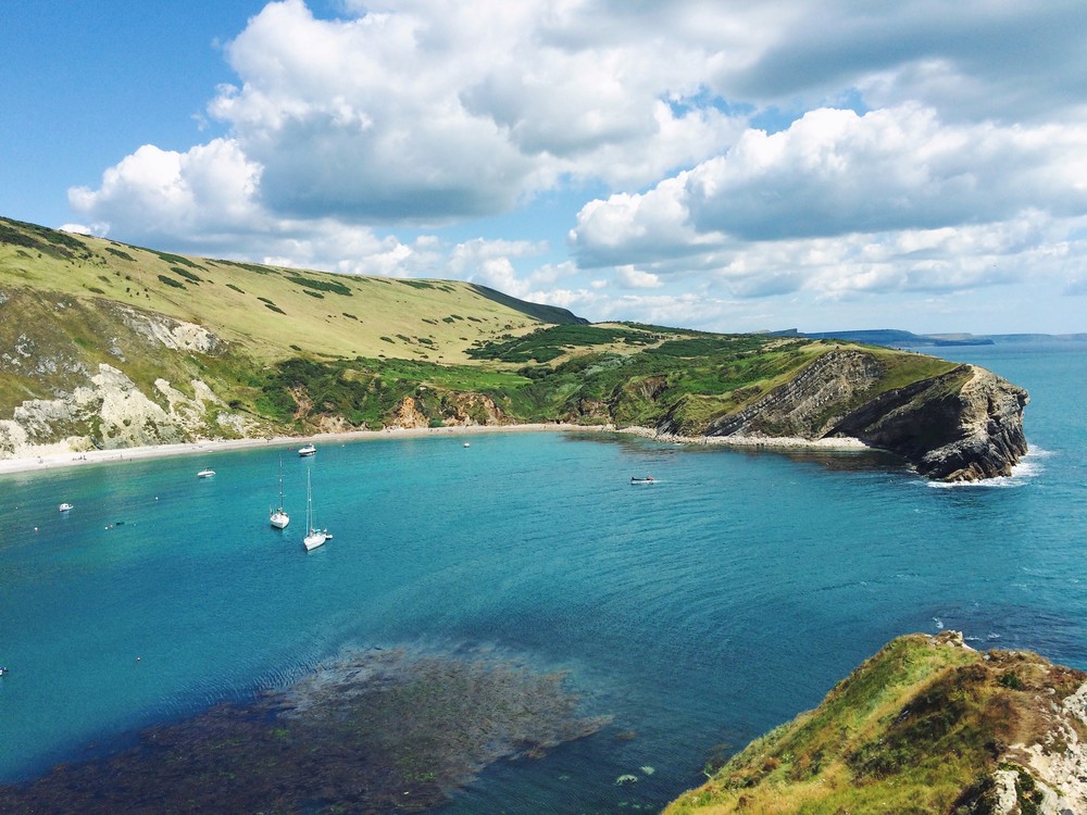 George and I visited Lulworth Cove on Saturday and we could not have asked for a more beautiful day. The cove was absolutely packed with people, but as we started hiking up the cliffs it quickly became less busy.