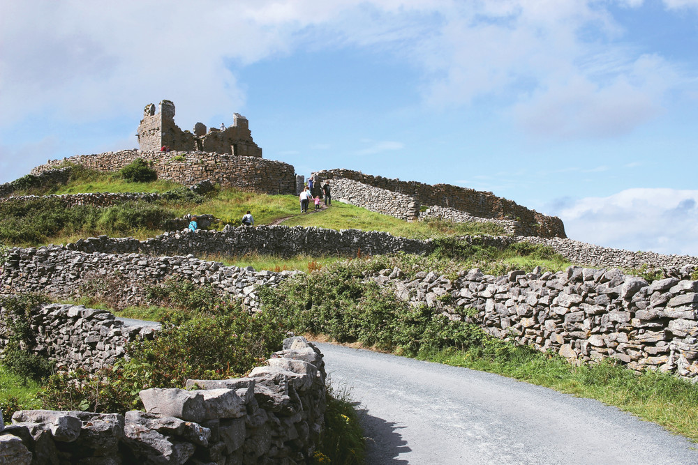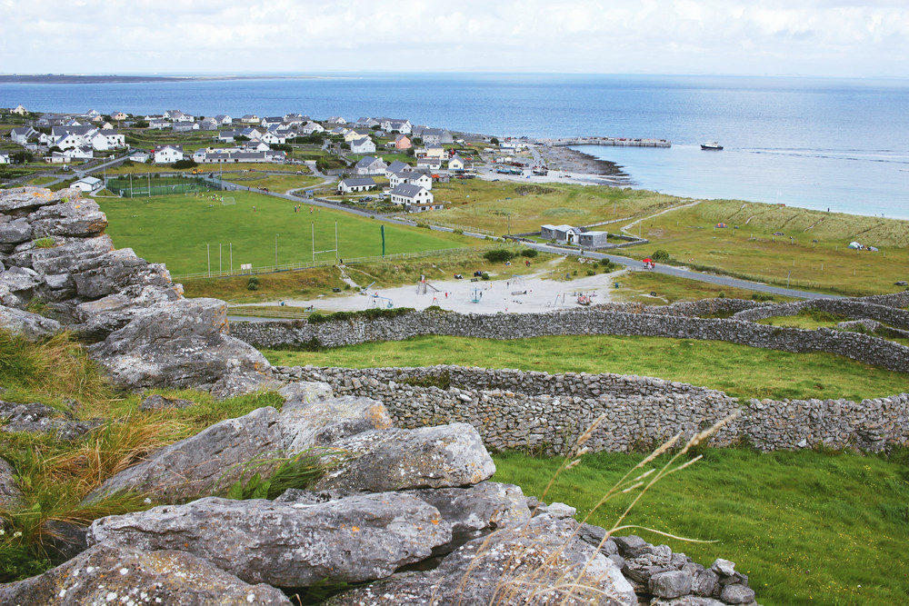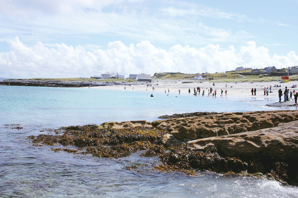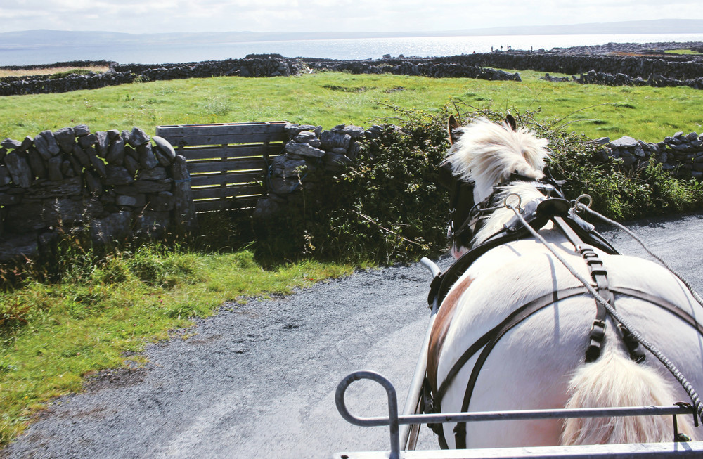 As we trotted along the road, they pointed out all the best sights, along with the unique characteristics of the island. The landscape was originally similar to that of the Burren, but farmers on the island cleared away as many rocks as they could to make room for their fields.