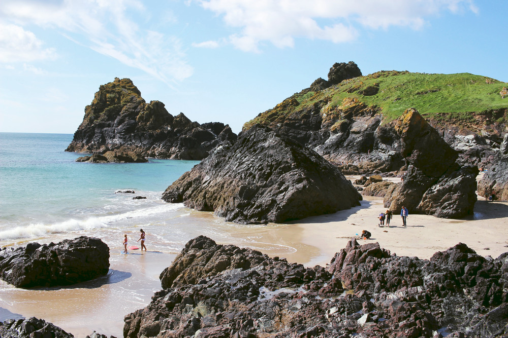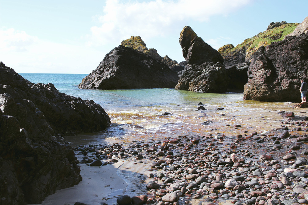 We got up early the next morning and headed to Kynance Cove because we were determined to spend some time at the beach on our vacation. We arrived at high tide and at first had the beach to ourselves. However, as soon as the tide went out, masses of people began making their way to the beach. It wasn’t very warm at all, but the sun was shining and we were happy.