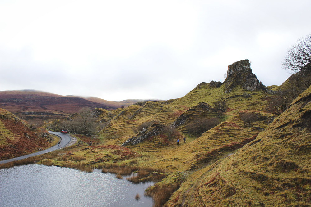Our final day on Skye was filled with quick bursts of rain interspersed with periods of sunshine, which somehow coincided perfectly with our driving plans. Our first destination of the day was the Fairy Glen, which I don’t really know how to describe. It was a really interesting place that felt kind of like Dr. Seuss meets Lord of the Rings, with tons of little hills and rocks to climb on.