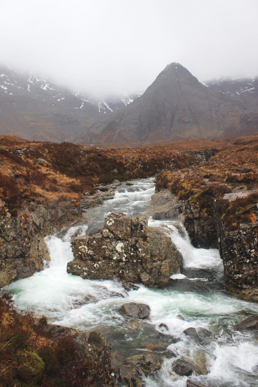 After a stormy night in a camping pod on Friday, we finally made it to Skye on Saturday morning. Our first stop: the Fairy Pools. The weather was absolutely terrible, but we weren’t going to let that stop us.
