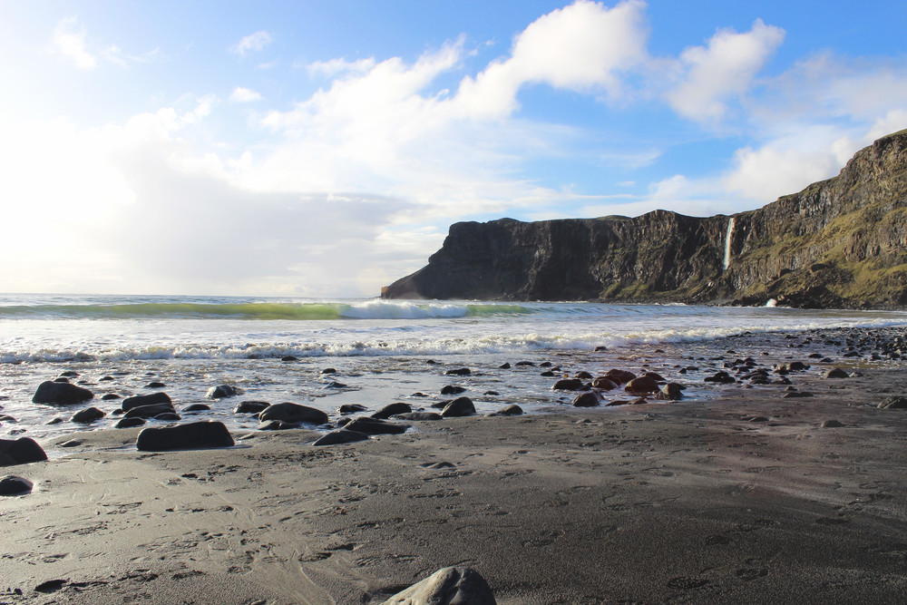 But my favorite place we went on Skye was Talisker Bay, where there is a waterfall that flows right into the ocean. We arrived when the sun was low in the sky and had the beach completely to ourselves.